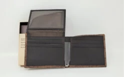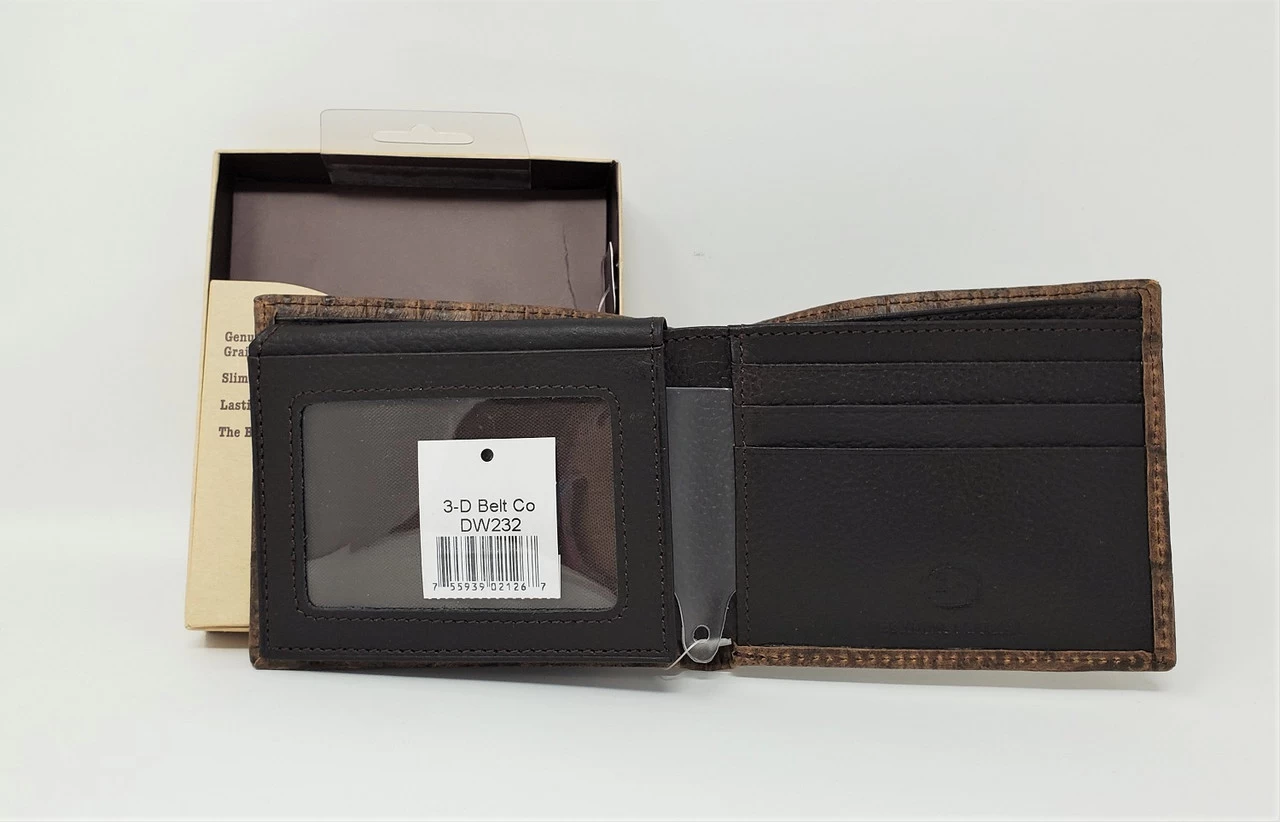 Top grain leather bi-fold wallet from 3D with a dark cognac crocodile print. Features include a flip case, credit card slots and ID holder.