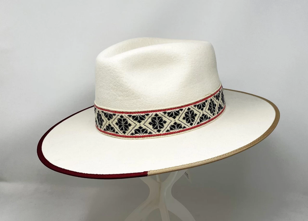 Made in the USA of 100% firm wool felt the Fazenda Fedora brings the rancher style hat up to date. The hat has a 3 1/2″ multi-colored bound edge brim and a 4 1/2″ teardrop crown. Features include a wide, colorful band and an adjustable sweatband.