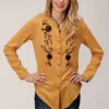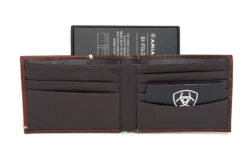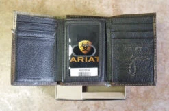 This Ariat ladies belt by M&F Western Products features inlay leather with scalloped edges and is adorned with beautiful silver conchos and rhinestones throughout.