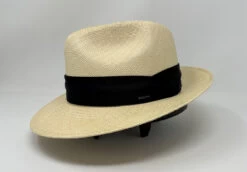 The Cuban is a classic genuine Brisa weave style Panama straw hat hand woven in Ecuador and blocked and trimmed in the USA. Constructed of 100% toquilla straw it has a 2 1/2″ snap brim and a 3 3/4″ grad crown. Features include a Japanese grosgrain pleated pug band, and a fine woven sweatband.