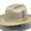 Made in the USA the Eden is a beautiful women’s fedora from Bailey’s Renegade Collection. Constructed of firm 2X quality wool it has a 3 1/2″ dipped, bound edge brim and a 4″ crown. Features include a wide, distressed, grosgrain ribbon band with a metal enameled pin, a soft sheepskin sweatband and full satin lining.