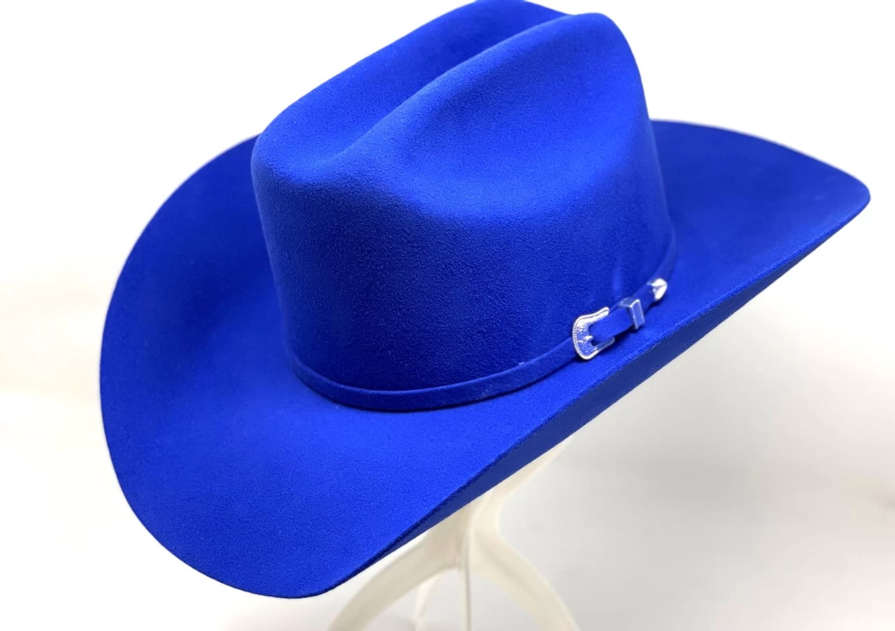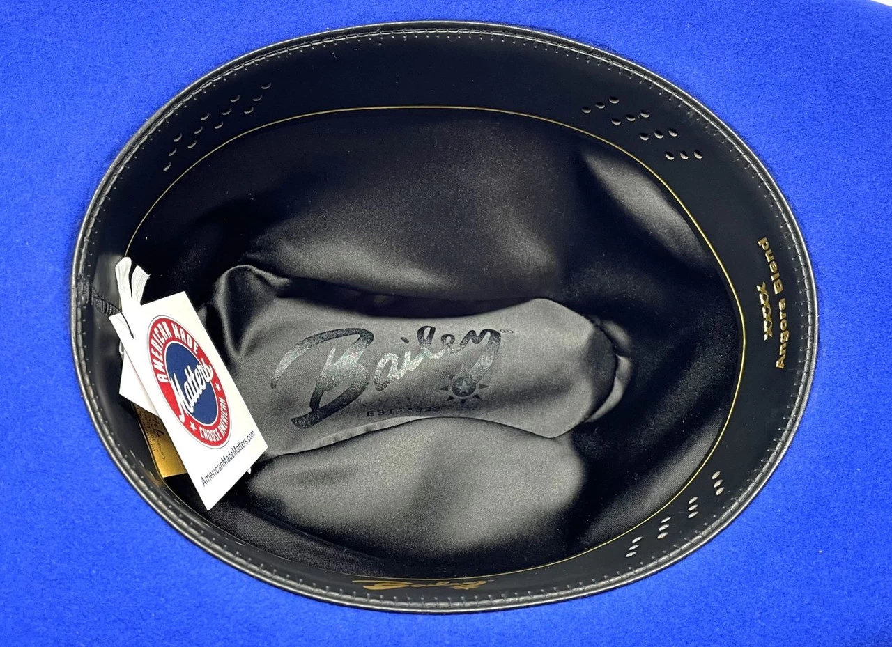 The Lightning is one of Bailey’s most popular hats and is suitable for show and work. Available in a wide array of colors you are sure to find one that suits your taste. Made in the USA, it is constructed of a 4X blend of 90% virgin wool and 10% angora fur. It has a 4 1/2″ cattleman crown and a 4″ brim with matching self-band. Features include a 3-piece silver buckle set, leather sweatband and full satin lining.