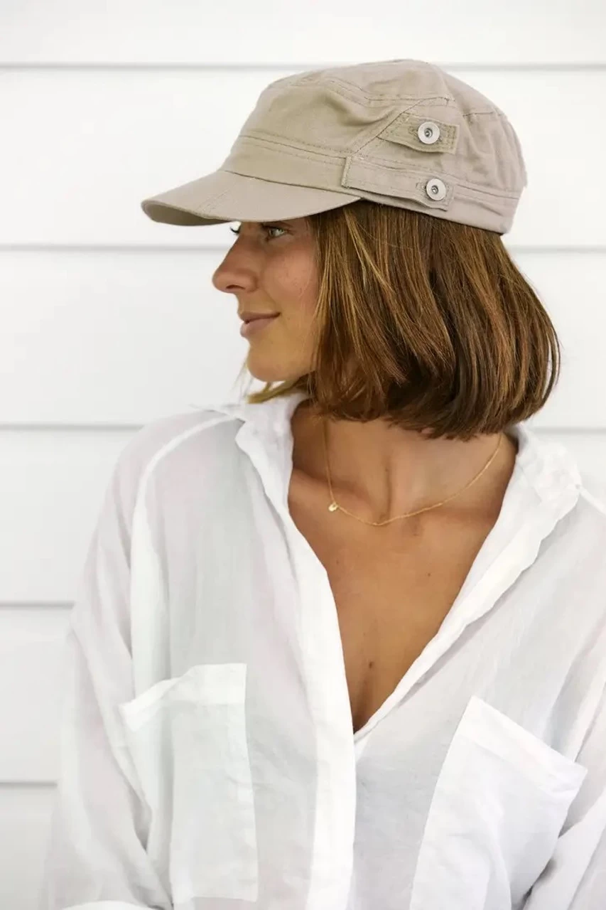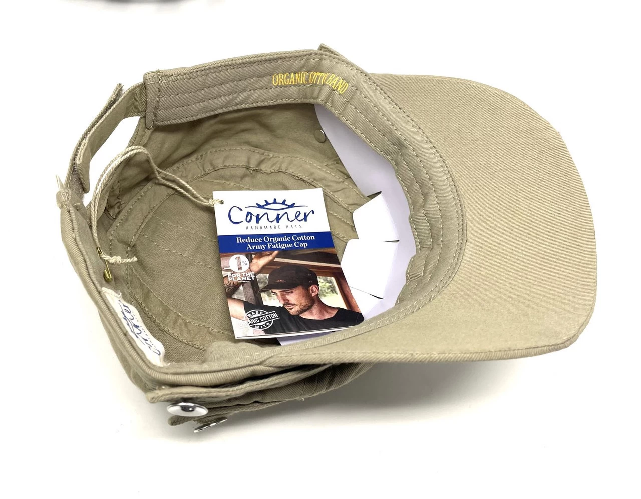 From Connor Hats we have the versatile military cap. Available in Olive and khaki and made of organic cotton it is a one size fits most with a rear velcro adjustment strap.