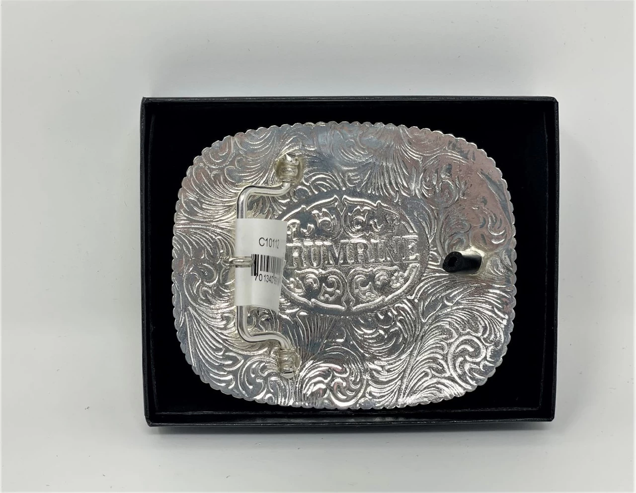 This sturdy buckle by Crumrine is made of silver and copper plate and features an antiqued longhorn. It measures 4″ x 3 1/2″ and will fit belts up to 1 1/2″ wide. To insure the quality of the finish it is Tuff Guard protected.