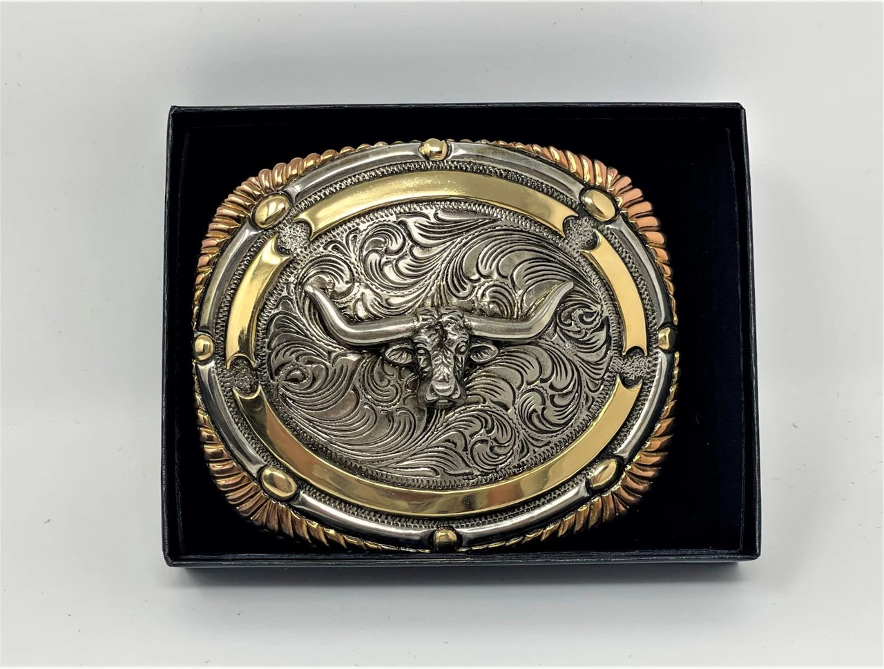 Crumrine Copper/Silver Longhorn Western Belt Buckle
