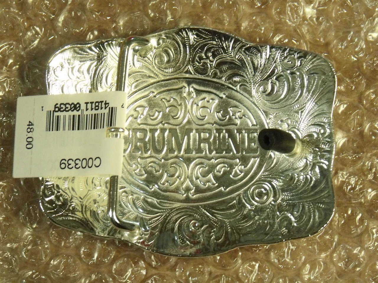 Solid and heavy weight, this nice looking buckle by Crumrine in silver and gold plate features the heads of Faithful Horses. It comes boxed, measures 2 3/4″ X 3 1/2″ and will fit belts up to 2″ wide.