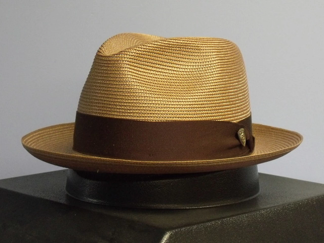 The Rosebud from Dobbs is made in the USA and is available in Grey, Burgundy, Cognac and Red. This fine looking Florentine Milan straw hat has a 2 1/8″ snap brim and a 4″(approx.) crown. Features include a 1 1/2″ matching ribbon band and a leather sweatband.