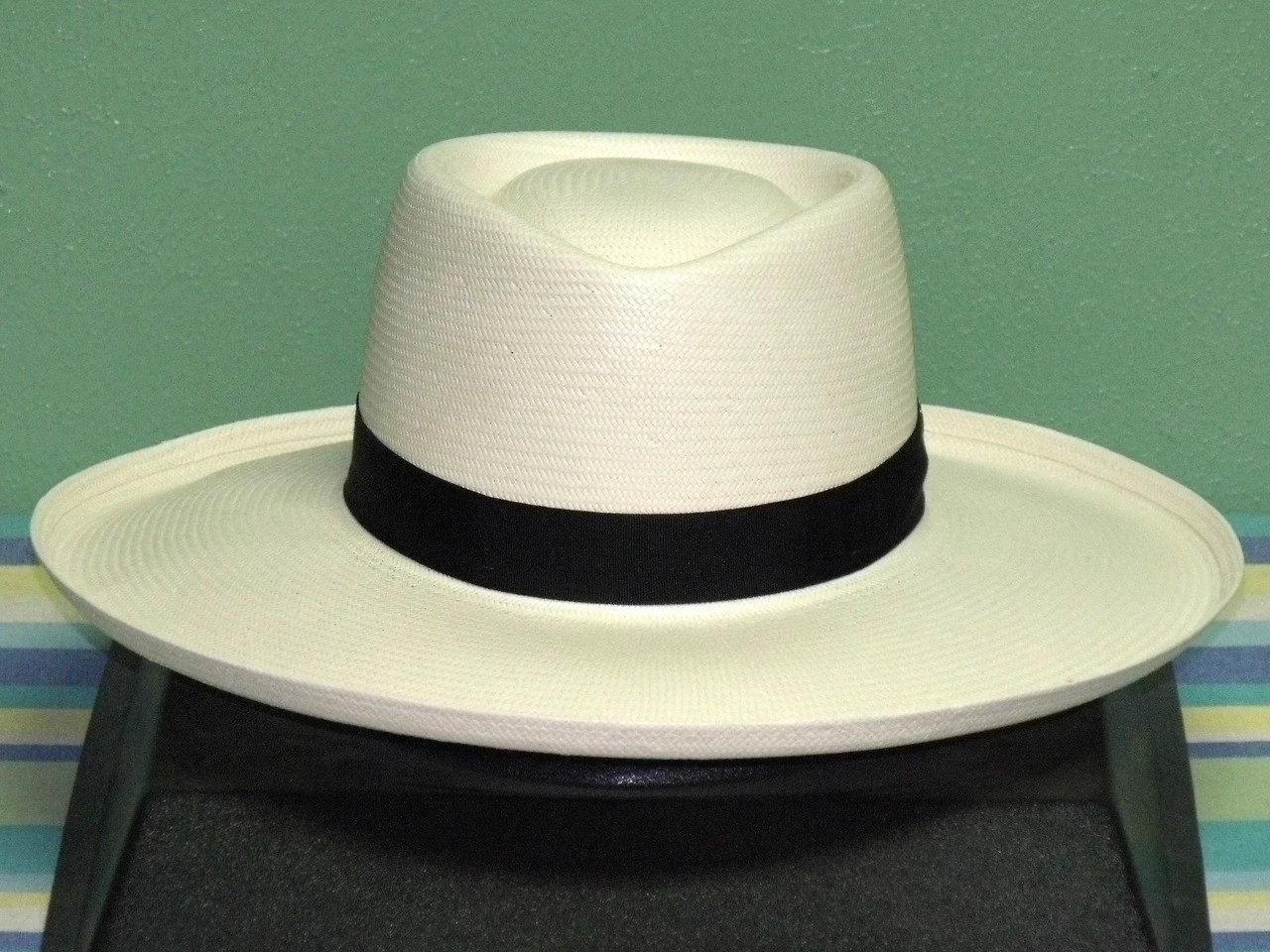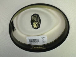 Made in the USA the Dobbs San Juan is constructed of Shantung straw. This traditional Planters hat has a 4 1/4″ (approx.)Â crown and a 3 1/2″ (approx.) pencil rolled brim. Features include a grosgrain ribbon band, Dobbs pin and bonded leather sweatband.