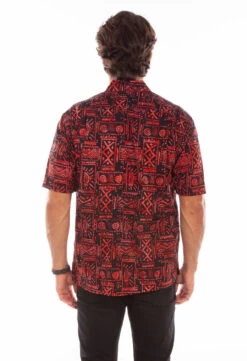 This shirt from Farthest Point features a point collar, left chest pocket, full button front and short sleeves. Batiking is a technique of wax-resist dyeing applied to a whole cloth, this style is in cotton and soaked in a color selectively and repeated.
