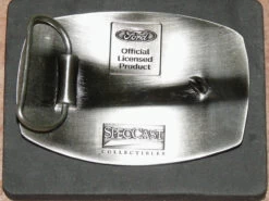 This Ford Screen buckle is heavy and solidly constructed of stainless steel. Distributed by Western Express measures 3 1/2″ x 2 1/2″ and will fit belts up to 1 1/2″ wide.