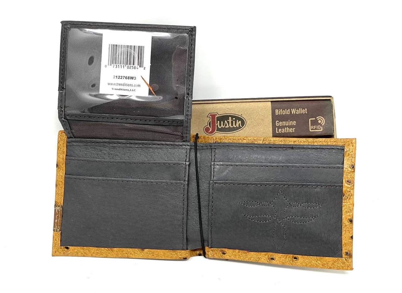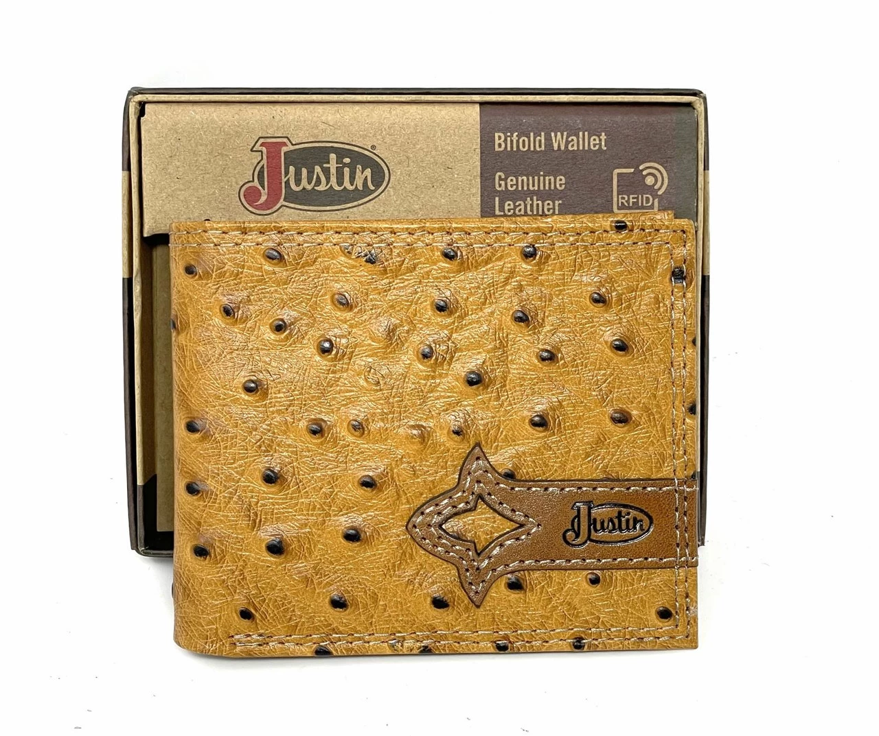 Justin Ostrich Embossed Genuine Leather Bifold Wallet