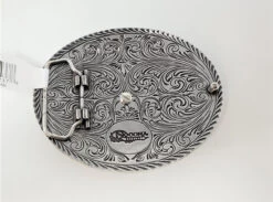 Awesome looking buckle by Nocona in silver tones featuring a longhorn surrounded by barbed wire on a brown matte background. It comes boxed, measures 3 1/4″ X 4″ and will fit belts up to1 3/4″ wide.