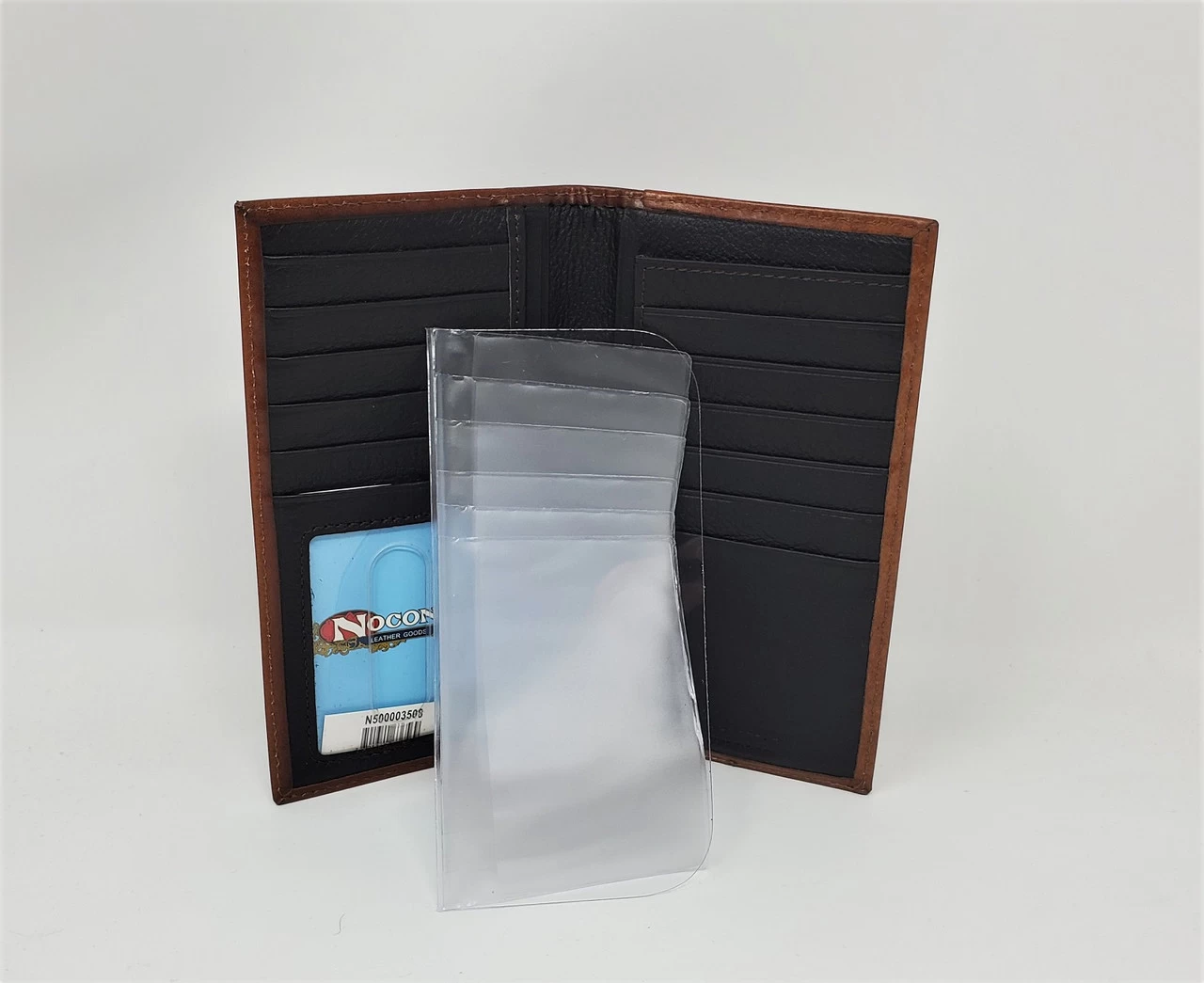 This Tan rodeo wallet from Nocona is made to last. Constructed of top grain leather it features an embossed design.