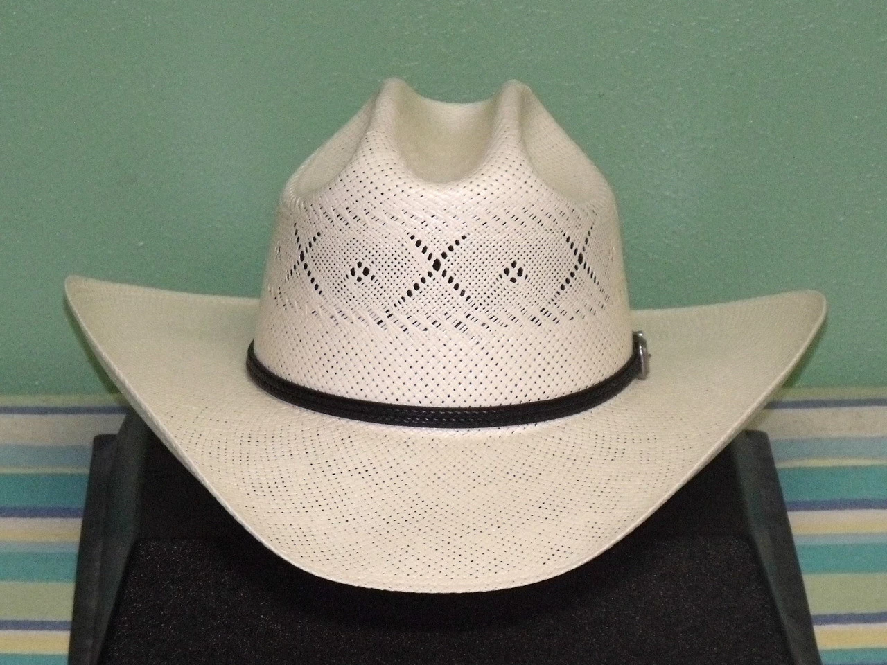 All My Ex’s is one of the best 20X Shantung straw hats from Resistol’s George Strait Collection. It has a 4 1/8″ cattleman crown and 4 1/4″ wire rimmed brim. Features include all around X shaped venting, black leather band with 3-piece buckle set and a genuine leather sweat band.