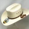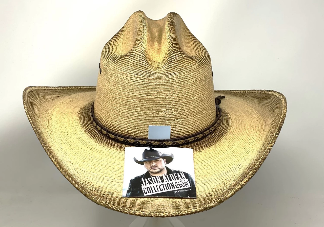 The Georgia Bpoy is from Resistol’s Jason Aldean Collection. Made of rustic fired Mexican palm it has a 4 1/8″ brim and a 3 1/2″ x 4 1/2″ (approximate at front and back crease) sloped, regular oval crown.