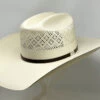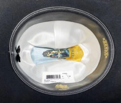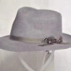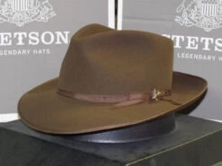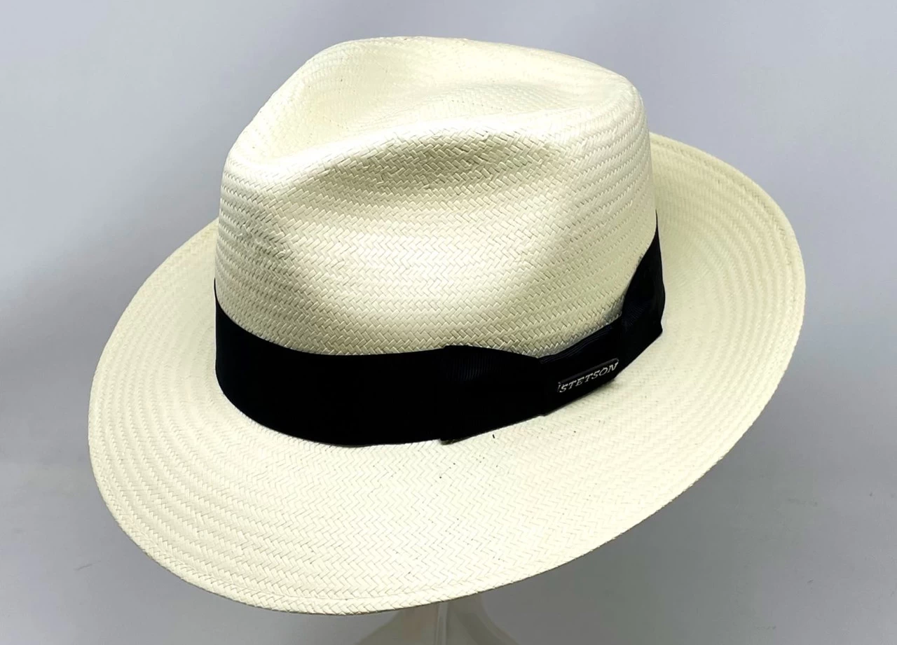 Stetsons Adventurer is a lightweight and affordable classic fedora. Constructed of Shantung straw it has a 2 1/2″ pre-snapped brim and a 4″ (approx. at front crease) tear drop crown. Features include a wide black grosgrain ribbon band, Stetson pin and a comfortable cotton sweatband.