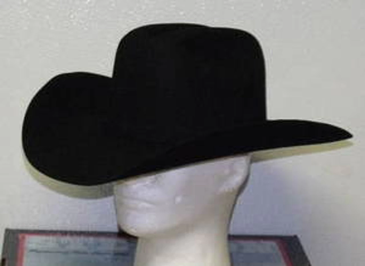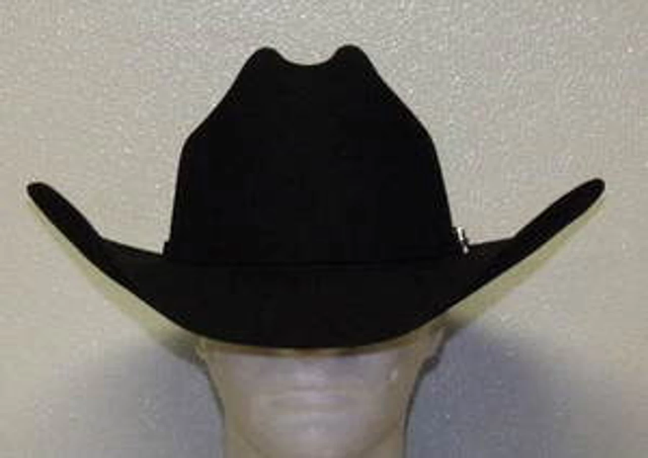 The Apache is made in the USA, by Stetson, of 4X black buffalo fur felt. It has a 4″ brim and 4 5/8″ regular oval cattleman crown. Features include full lining, leather sweatband and a matching band with decorative silver buffalo 3 piece buckle with “1865” on the tip.