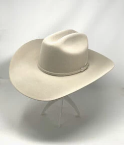 Made in the USA, Stetson’s Bar None is constructed of 6X quality fur felt. The hat has a 4 1/4″ shovel brim and 4 1/4″ low cattleman crown. Features include a self-matching band with a 3-piece buckle set, full satin lining and a leather sweatband.