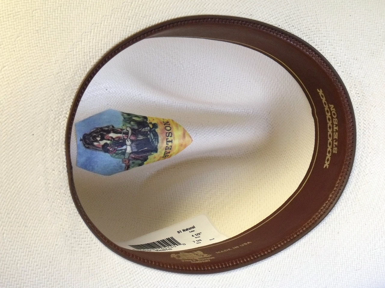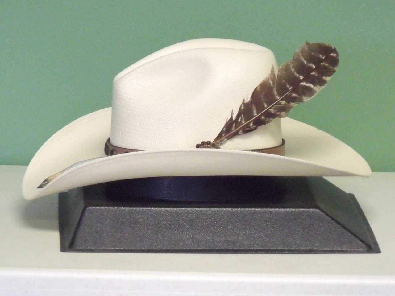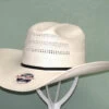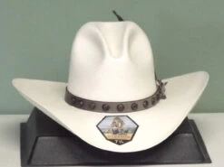 Reminiscent of the old west the Broken Bow is from Stetson’s 10X collection. Constructed of 10X quality Shantung straw it has a 4″ x 5 1/2″ Gus style crown and a 4 1/2″ brim. Made in the USA it features a leather band with large rivets and a leather concho, removable feather, satin lining and a leather sweatband.Â