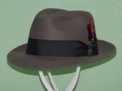 Made in theĀ USA the StetsonĀ FrederickĀ comes at a very reasonable price. Constructed of 100% wool it has a 2″ under weltĀ brim and 4 1/2″ (approx.) center dent crown. Features include a wide 1 3/4″ grosgrain ribbon band with Stetson pin and removable feather, leather sweatband and full satin lining.