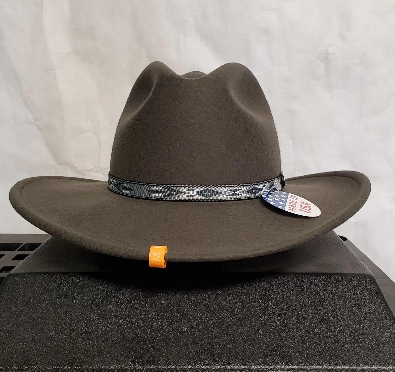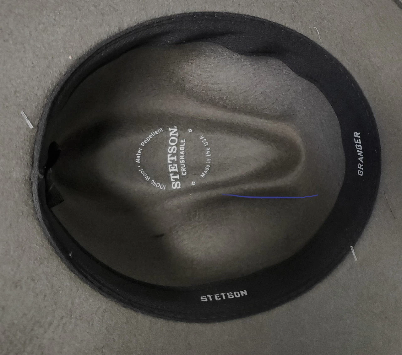 The Granger is a crushable hat from Stetson’s Outdoor Collection and is made in the USA. Constructed of 100% wool it has a 4″ (approx.) crown and 3 1/4″ under-welt brim. Features include a grey southwestern webbed band with leather connector and Stetson pin, and a DriLex sweatband.