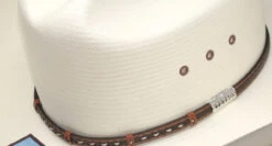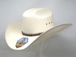Made in the USA, Stetson’s Gunfighter is constructed of 10X quality Shantung straw. It has a 4″ wide brim and a 4 3/8″ cattleman crown. Features include a decorative band, ventilation eyelets and a leather sweatband.