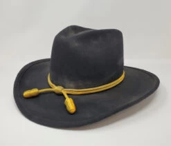 4 1/2″ (approx.) pinch front crown. Other features include a sweat wicking Dri-Lex sweatband and gold cord cavalry band with acorns.