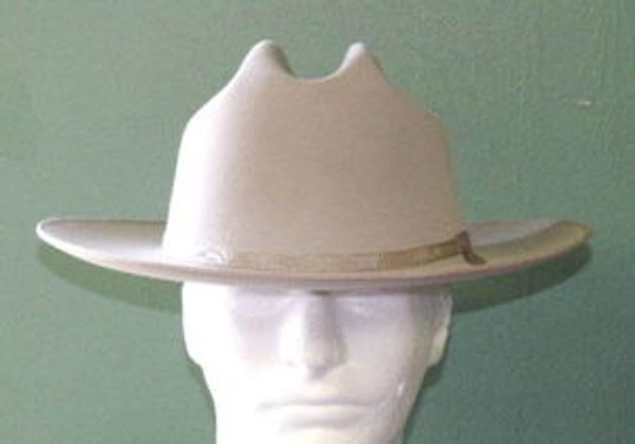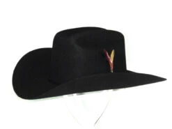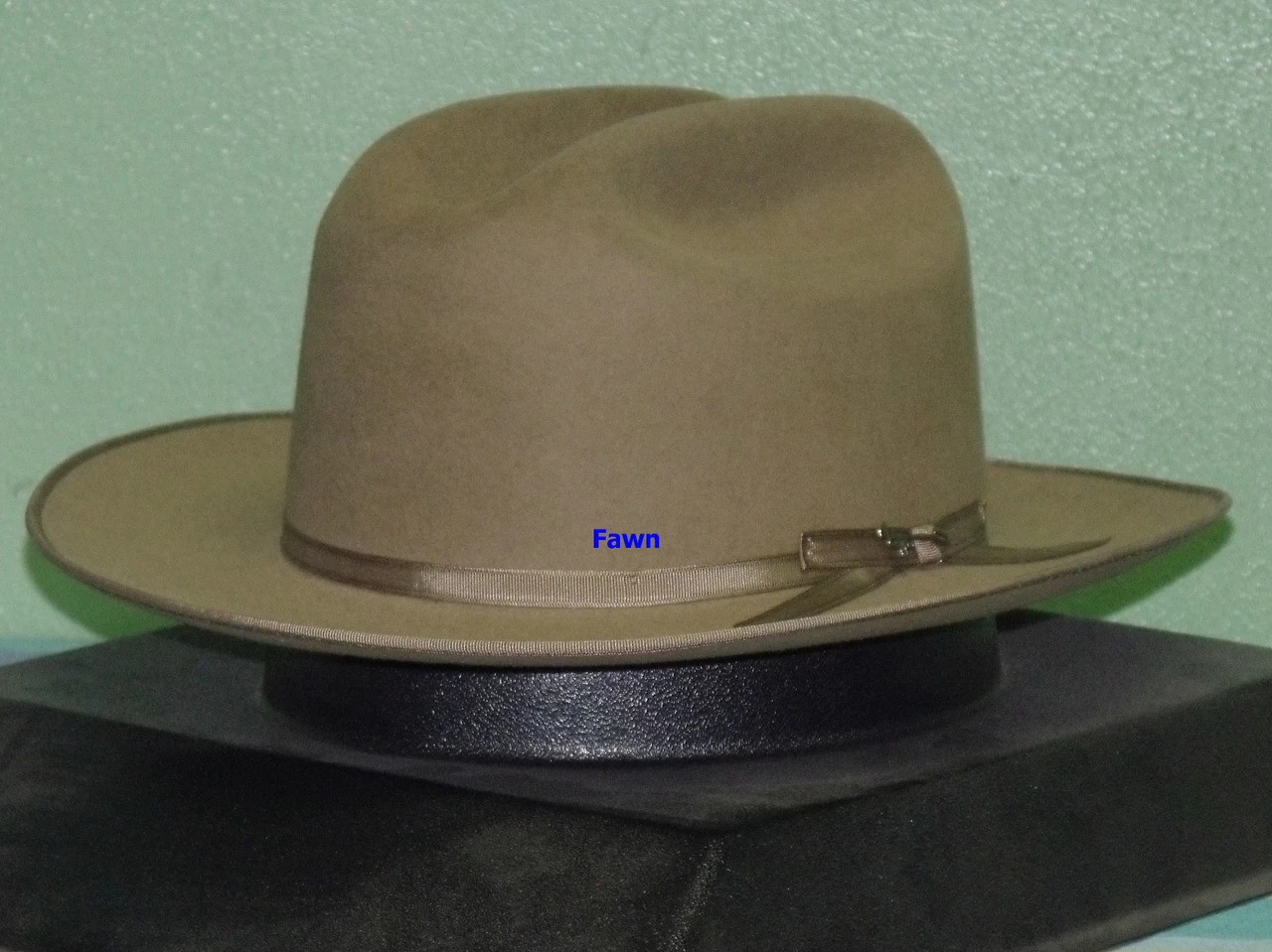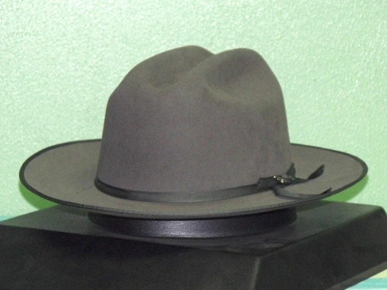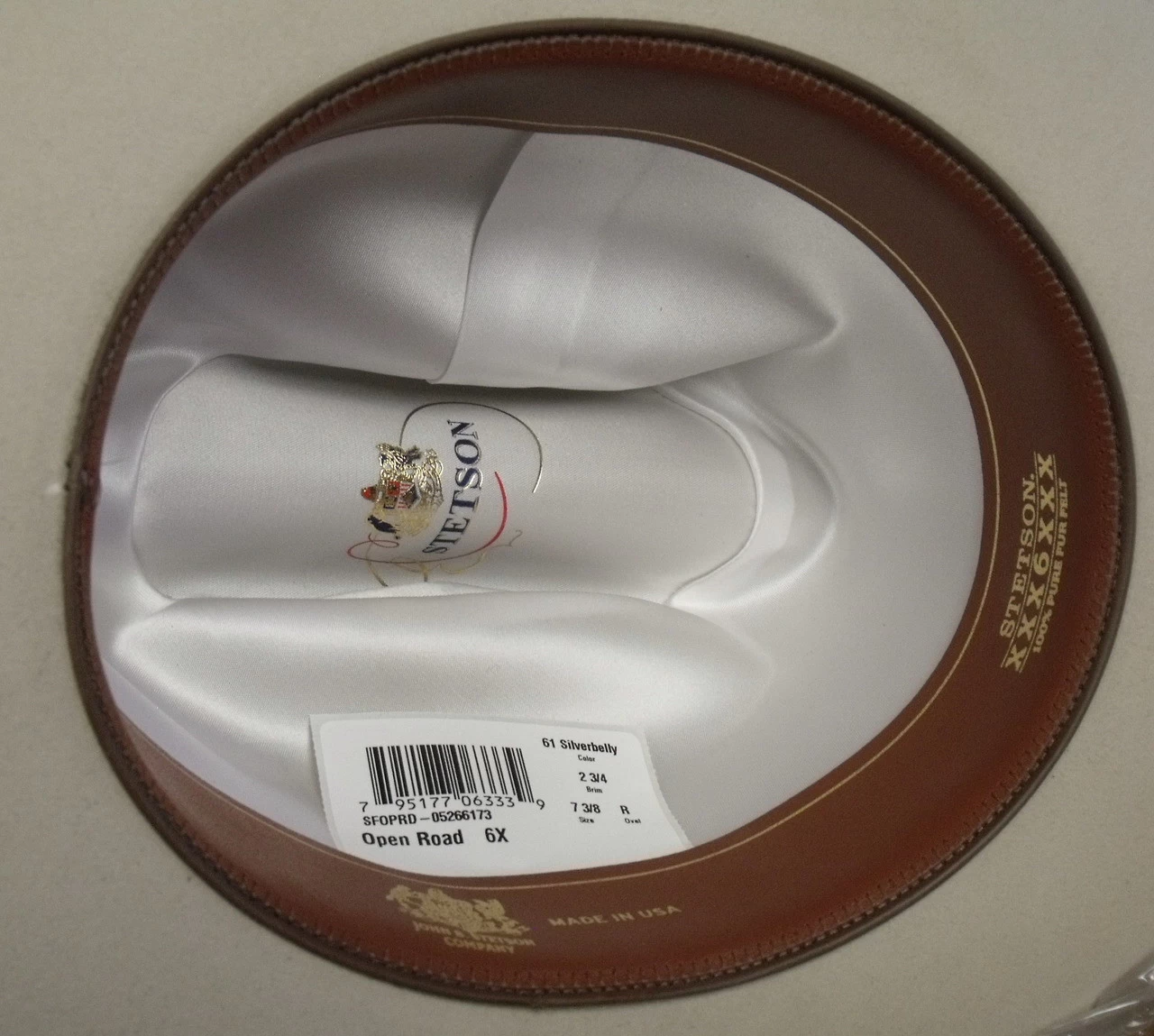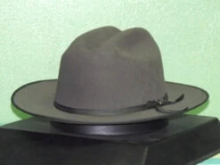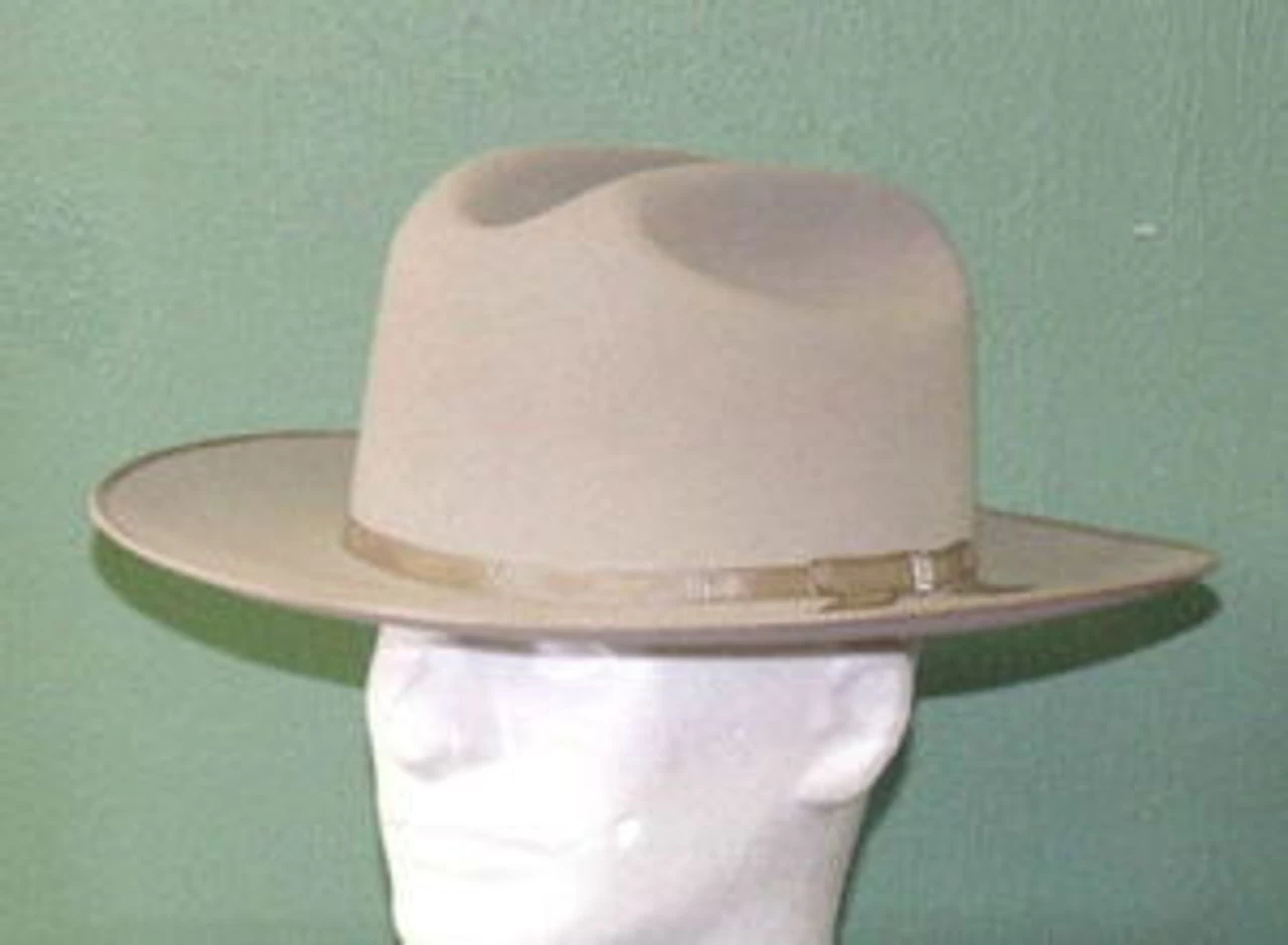 The Open Road is the classic rancher style hat. Made by Stetson in the USA of 6X fur and is available in Black, Silverbelly (Light tan), Caribou (Grey) and Chocolate. It has a 4 1/4″ (front crease) regular oval crown, 2 3/4″ bound edge brim and a grosgrain ribbon hatband.