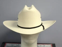 Made in the USA the Rancher is from Stetson’s Classic collection. Constructed of 10X Genuine Shantung Panama straw it has a 5″ regular oval crown and is available with 3 1/2″ or 4″ brim. Features include a 2-ply band with JBS pin and leather sweatband.