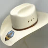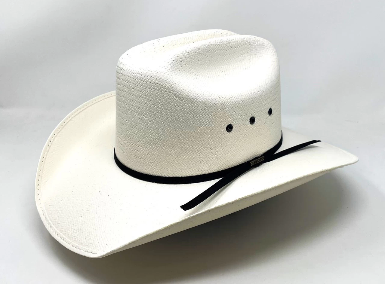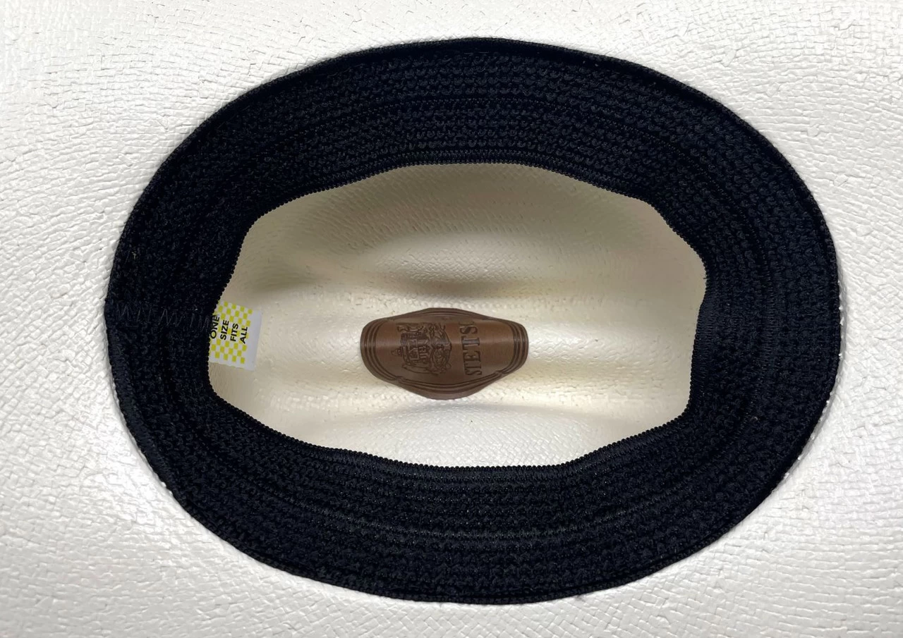 The straw Rodeo Jr. is from Stetson’s Stallion Collection. It has a 4 1/4″ cattleman crown and a 3 1/2″ brim. The elastic sweatband will allow it to fit most of your smaller buckaroos up to a size 6 7/8. Features include ventilation eyelets, a doubled ribbon band and a Stetson pin.