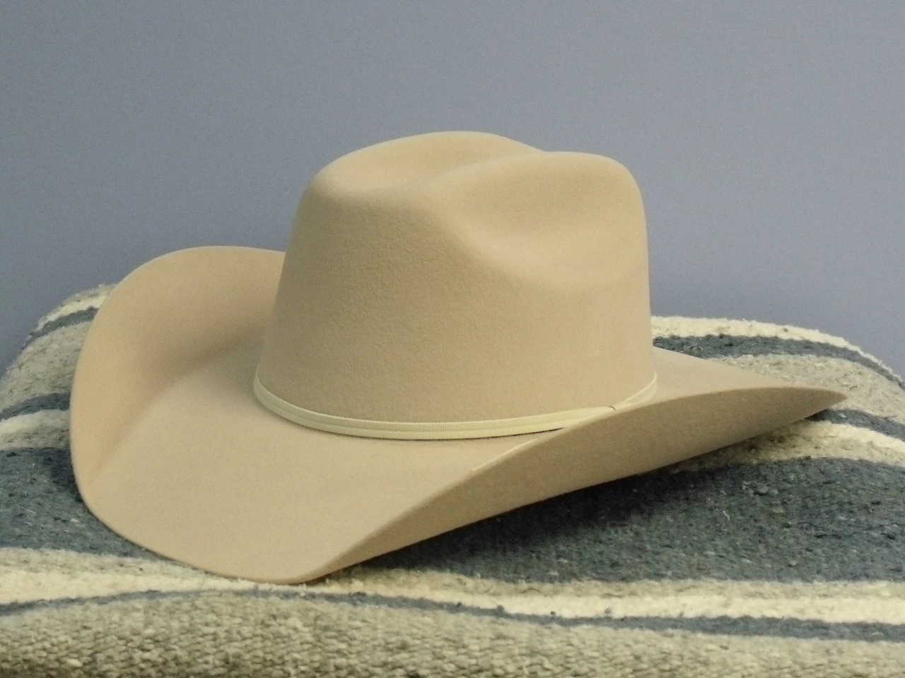 This great kid’s hat by Stetson is available in either black or buckskin. Constructed of wool felt it has a 3 7/8″ crown and a 3 1/2″ brim. The elastic sweatband is designed to fit size 6 3/4 and smaller.