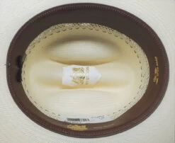 Made in the USAÂ the Stetson Open Road 5 is new to the Open Road series. Constructed of Shantung straw with a firm finish it has a 4″ (approx.) regular oval crown and 2 3/4″ brim. Features include all-around venting, sheepskin sweatband with a grey grosgrain ribbon band and Stetson pin.