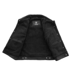 Complete your look with the Samantha. It is a lighter weight (approximately 3 lbs.) faux shearling jacket from First Manufacturing’s Whet Blu Fashion Collection. It features a black twill exterior and a black faux fur interior. Other features include two chest pockets, two hand pockets, two interior pockets, and a button closure.