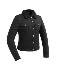 Complete your look with the Samantha. It is a lighter weight (approximately 3 lbs.) faux shearling jacket from First Manufacturing’s Whet Blu Fashion Collection. It features a black twill exterior and a black faux fur interior. Other features include two chest pockets, two hand pockets, two interior pockets, and a button closure.