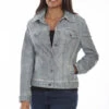 This stylish shirt is from Roper’s Five Star Collection. It is a cold shoulder tee with strappy details and screen printed decorations.